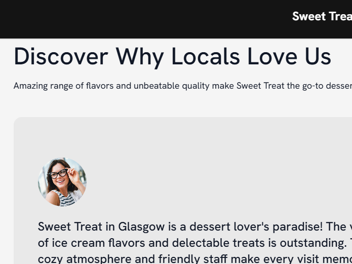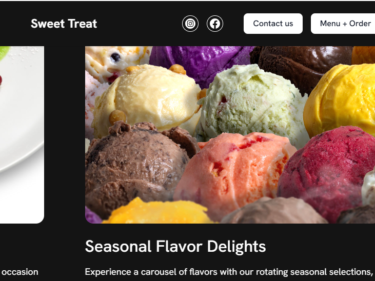 The site showcases the huge selection of ice creams and treats available.